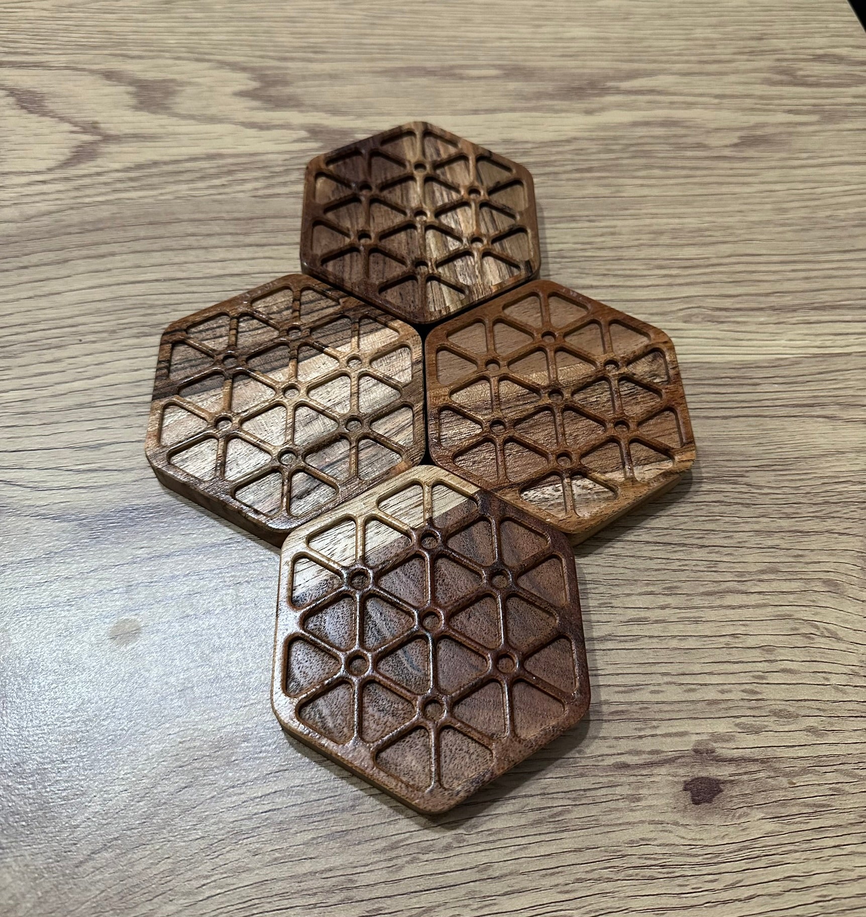 Add a unique, handcrafted touch to your space with this precision CNC-machined coaster made from solid acacia wood. Designed with a clean, geometric isogrid pattern, each piece is both functional and eye-catching — perfect for modern homes, workspaces, or as a thoughtful gift.